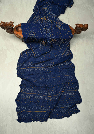 Authentic Ink Blue Silk Georgette Saree with Sarkam Bandhani | SILK MARK CERTIFIED