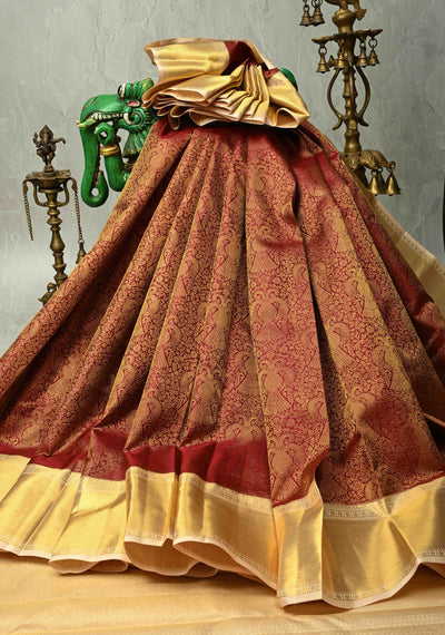 Statement Maroon Korvai Kanjivaram Pure Silk Saree with Floral Brocade Ganda Berunda Motifs and Zari Border | SILK MARK CERTIFIED