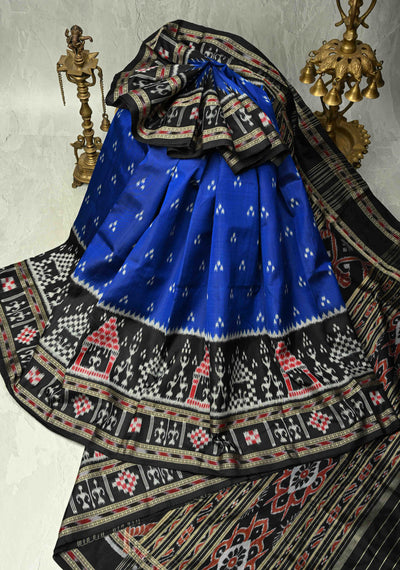 Sapphire Blue Sambalpuri Ikkat Silk Saree with Dolabedi Border and Pallu, No Blouse Piece | SILK MARK CERTIFIED