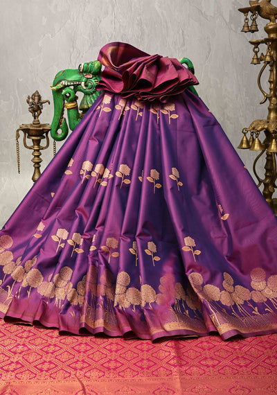 Purple Dual Tone Banarasi Katan Silk Saree with Floral Butta and Zari Border | SILK MARK CERTIFIED