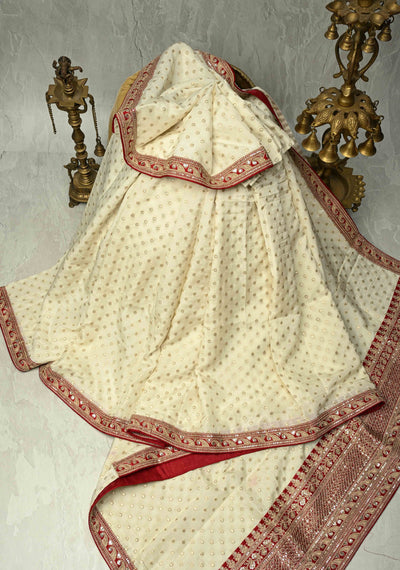 Off White Viscose Saree with Butta Brocade and Fancy Lace Border