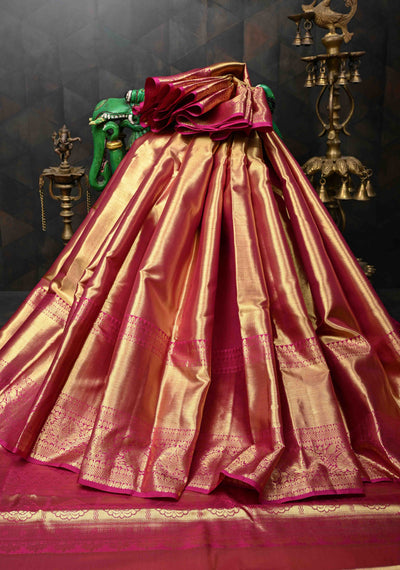 Gold -Pink Tissue Kanjivaram Pure Silk Saree with Distinct Motifs on Half Zari Border | SILK MARK CERTIFIED