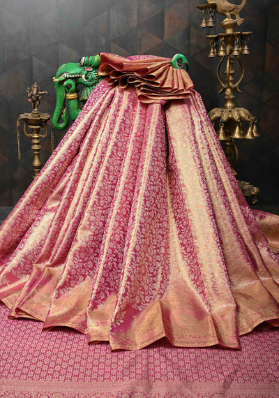 Rose Gold Meenakari Tissue Kanjivaram Pure Silk Saree with Floral Brocade Jaal and Zari border | SILK MARK CERTIFIED