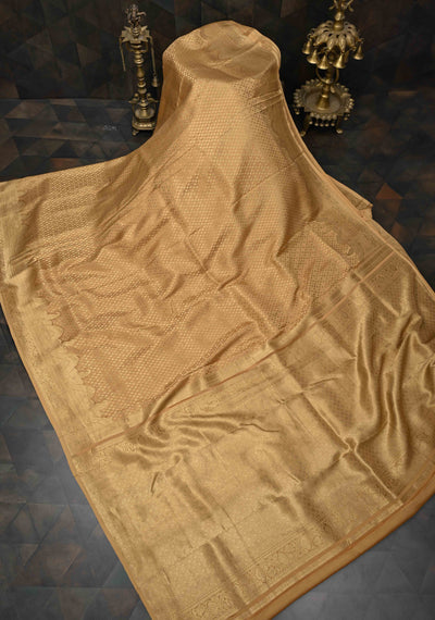 Dusty Gold Kanjivaram Tissue Silk Saree with Zari Brocade and Contrast Zari Border | SILK MARK CERTIFIED