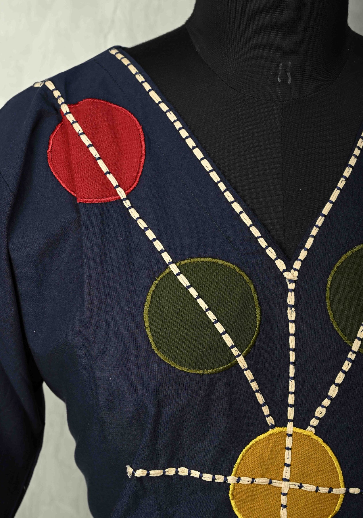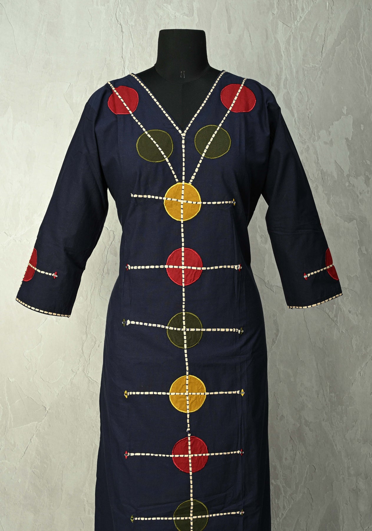Navy Cotton Designer Patch Kurti Set – Hand Embroidered Details
