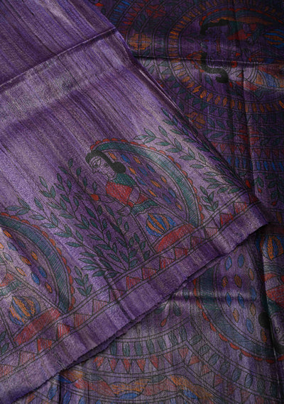 Purple Desi Tussar Madhubani Hand-Painted Saree | SILK MARK CERTIFIED