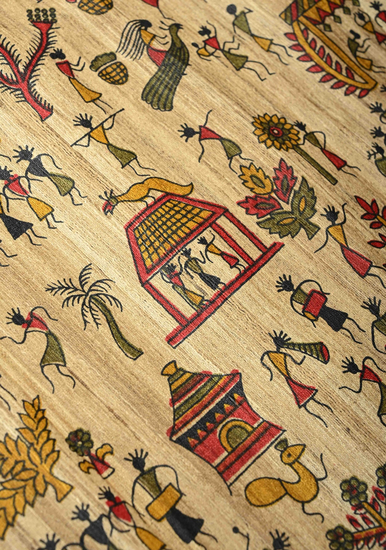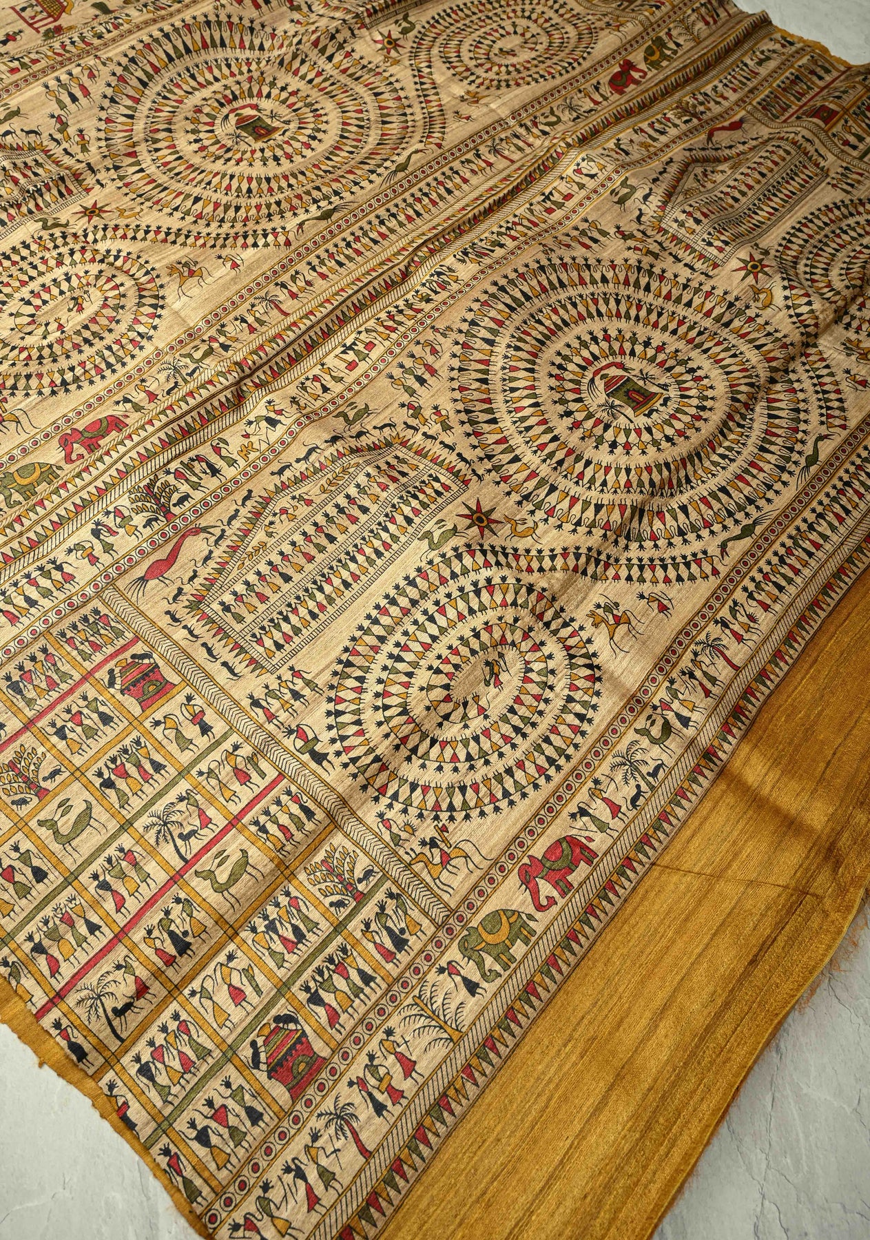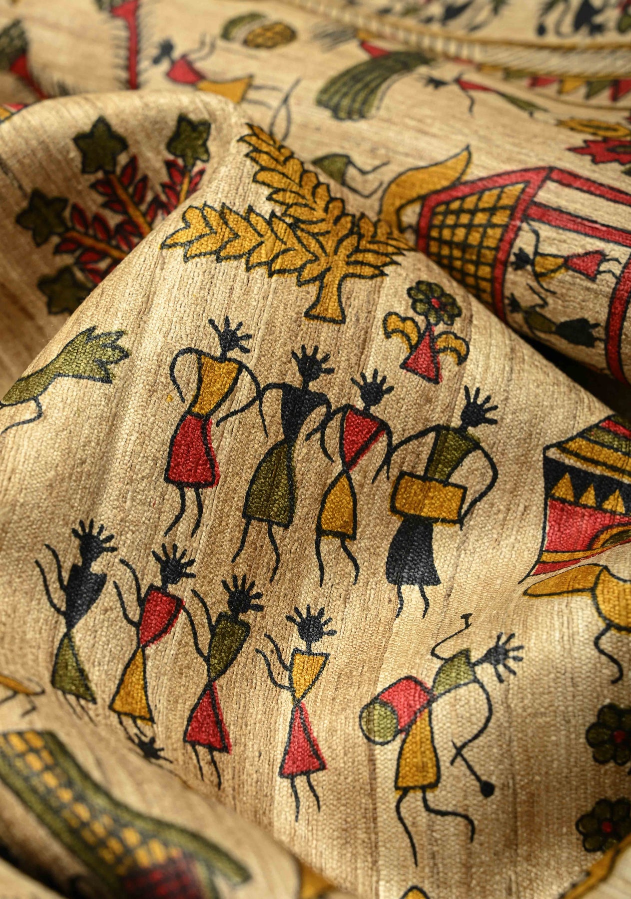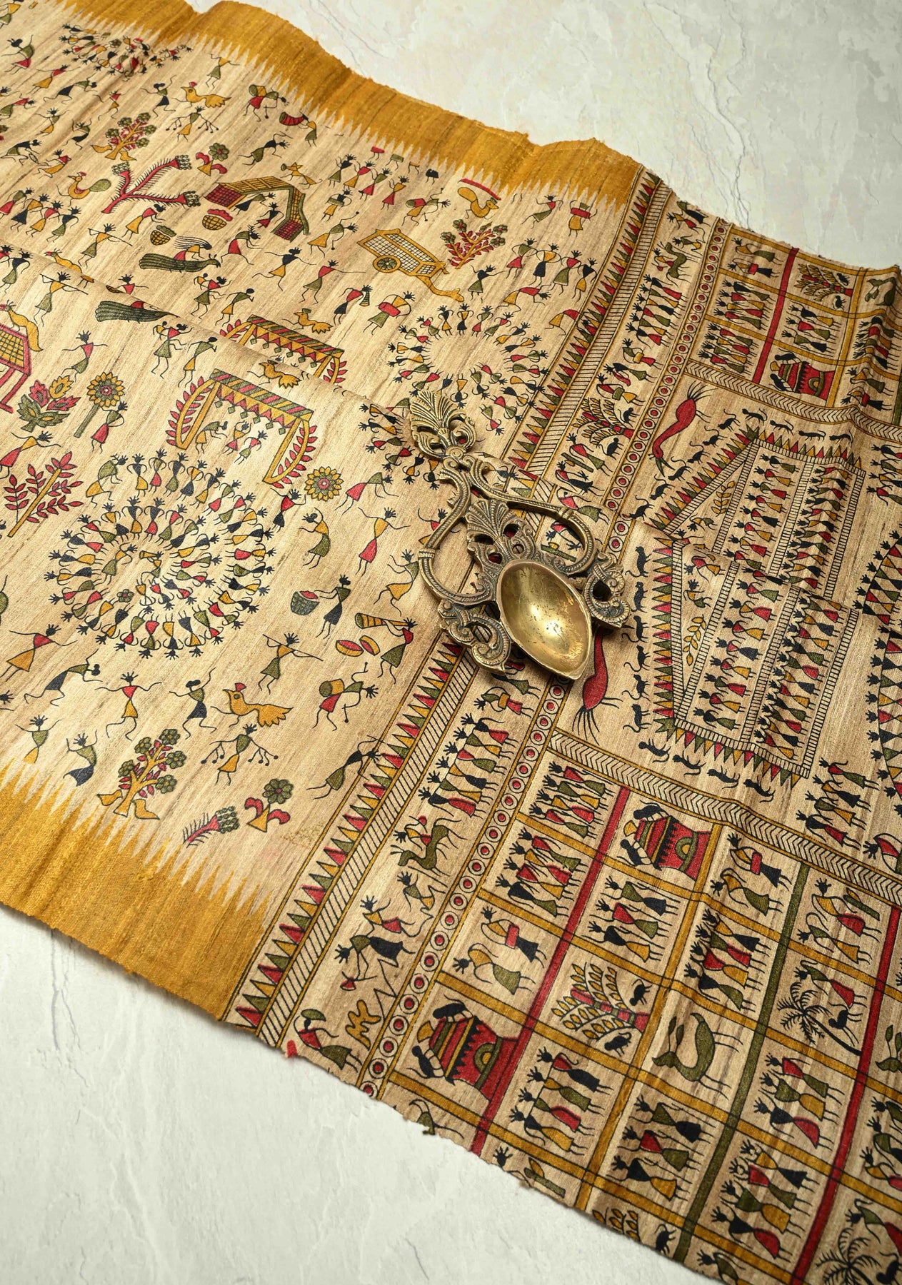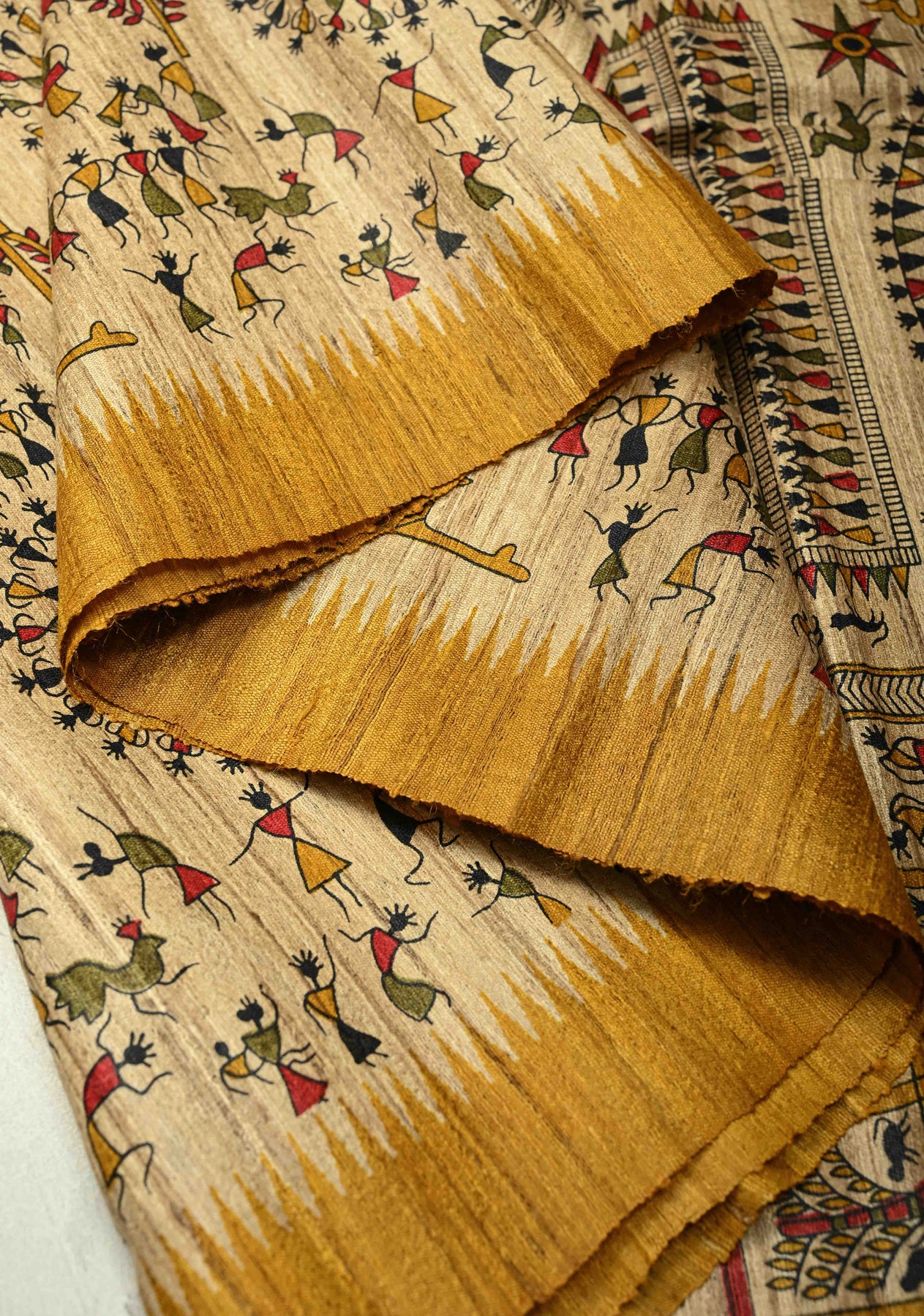Natural Color Handloom Tussar PrintedKatiya Saree | SILK MARK CERTIFIED