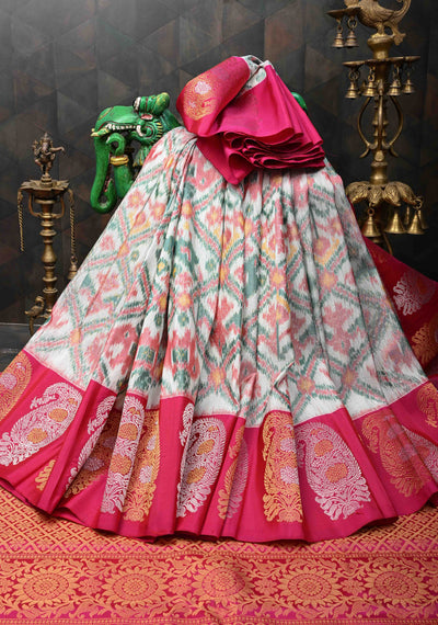 Ivory Patola Kanjivaram Fusion Silk Saree with Zari Border and ikkat pallu | SILK MARK CERTIFIED