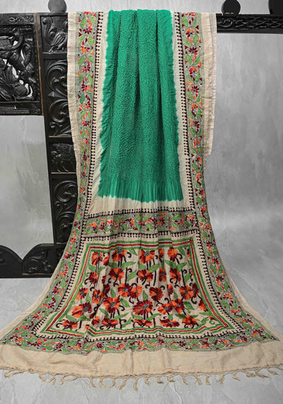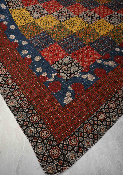 Kantha, a unique art form native to the Eastern part of India and Bangladesh, that has been practiced for centuries. Generally womenfolk gather together and sew fabric scraps to form applique designs and form running stitches either linearly or into motifs.