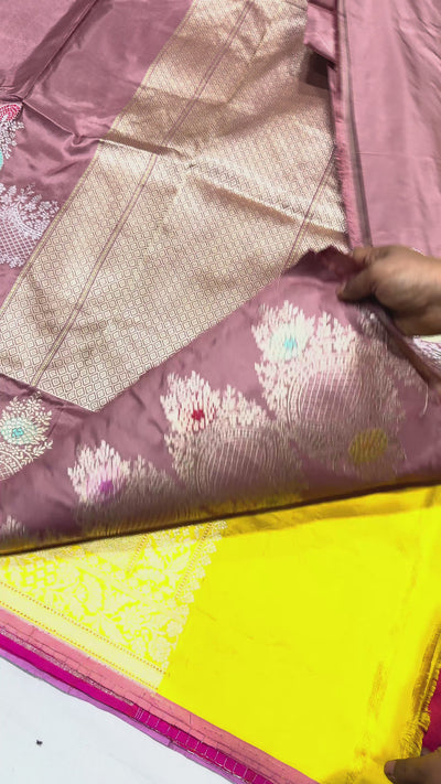 Dusky Mauve Banarasi Pure Katan Silk Saree with Meenakari Floral Skirt Border Border | SILK MARK CERTIFIED