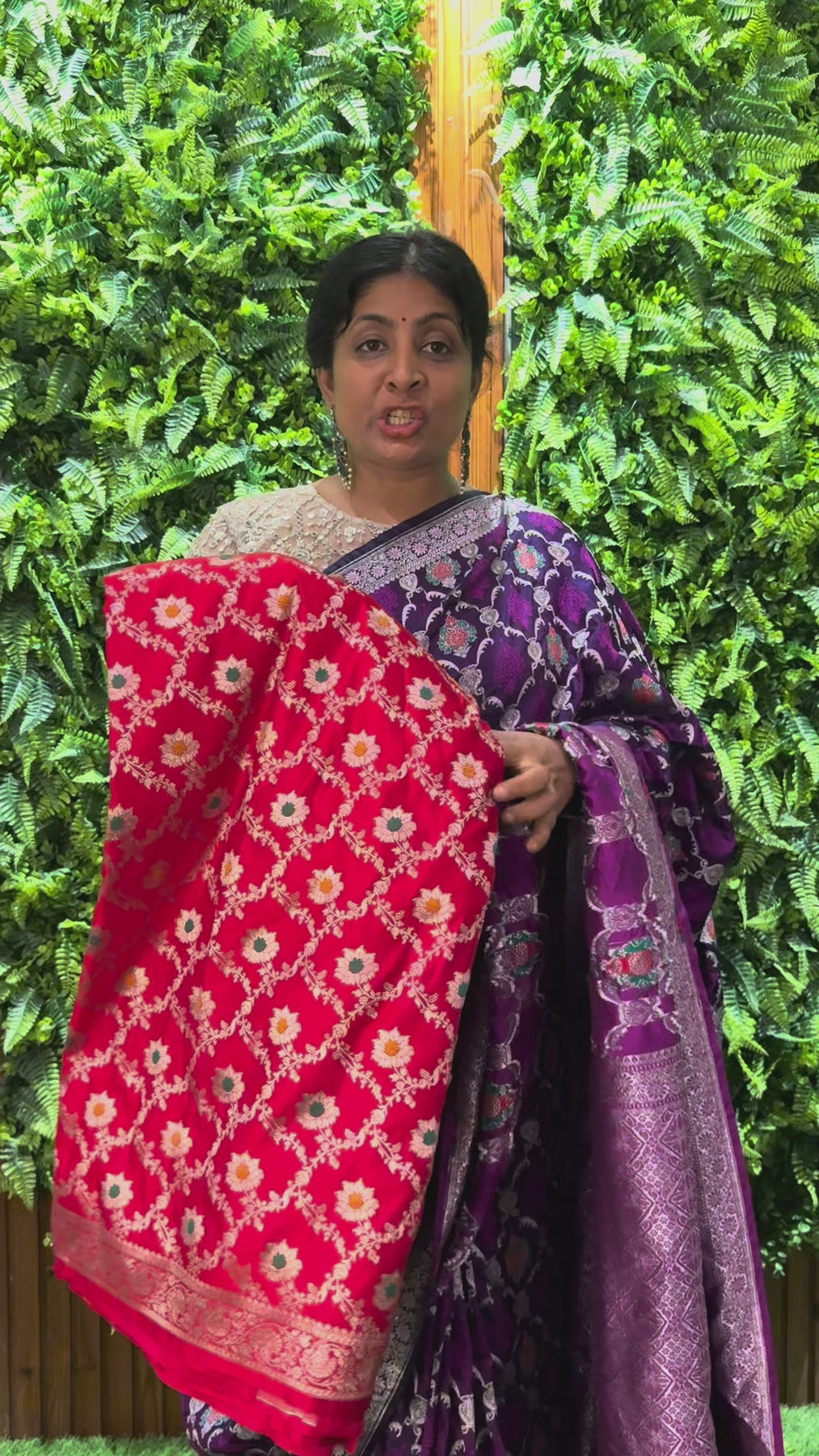 Regular price $169.58 Save $-169.58A Red Banarasi Semi Mashru Silk Saree is a breathtaking fusion of vibrancy and exquisite craftsmanship. Handwoven from semi Mashru Banarasi silk, it boasts a bold, radiant red hue, radiating festive warmth and elegance with a subtle, glossy sheen. The saree is adorned with an intricate floral Meenakari jaal, featuring vibrant, multicolored enamel-inspired zari patterns woven in delicate floral motifs across the body, creating a mesmerizing, artistic allure. The zari border, intricately crafted with gold or silver threads, frames the saree with ornate detailing, enhancing its regal charm. Perfect for weddings, festivals, or grand occasions, this saree drapes gracefully, blending the timeless artistry of Banarasi weaving with the vibrant sophistication of Meenakari work