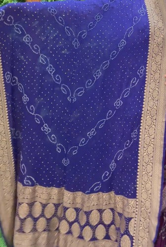 Sarkam Bandhej Silk Georgette Saree in Sapphire Blue with Meenakari Skirt Border | SILK MARK CERTIFIED