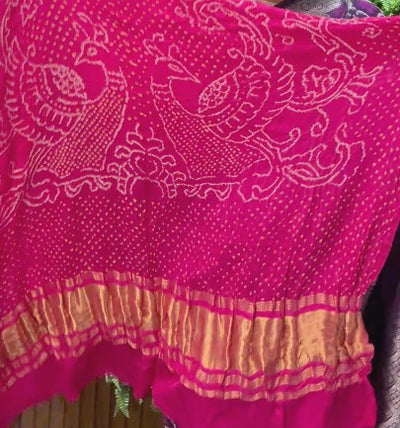 Pink Sarkam Bandhej With Peacock's motif on Gajji Silk Dupatta with zari Border