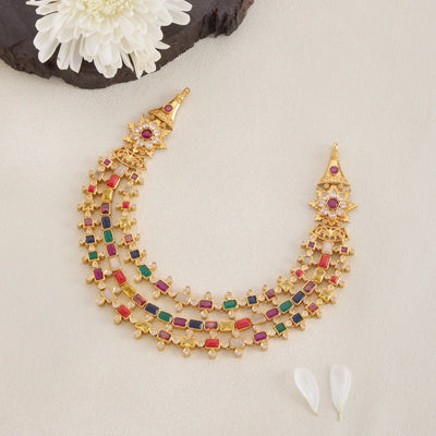Pure 92.5 Silver, Gold Plated Devaani Three Layer Necklace