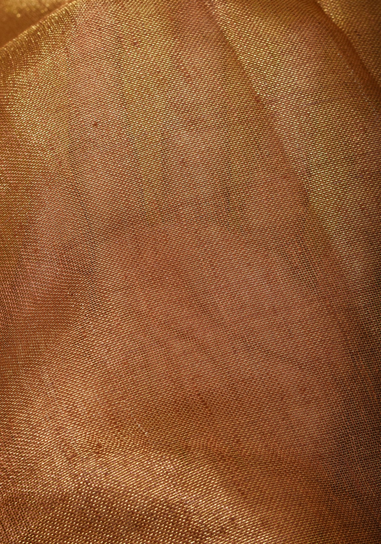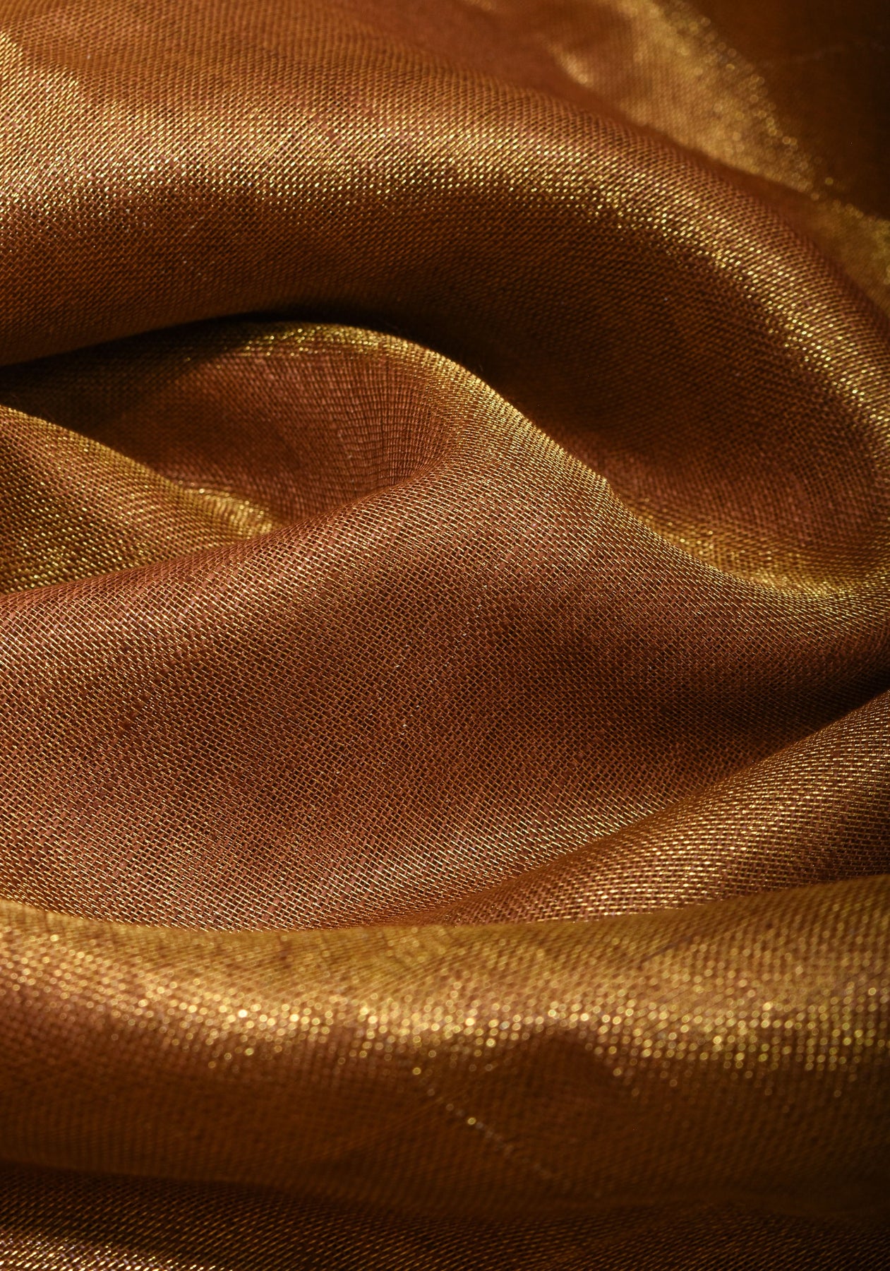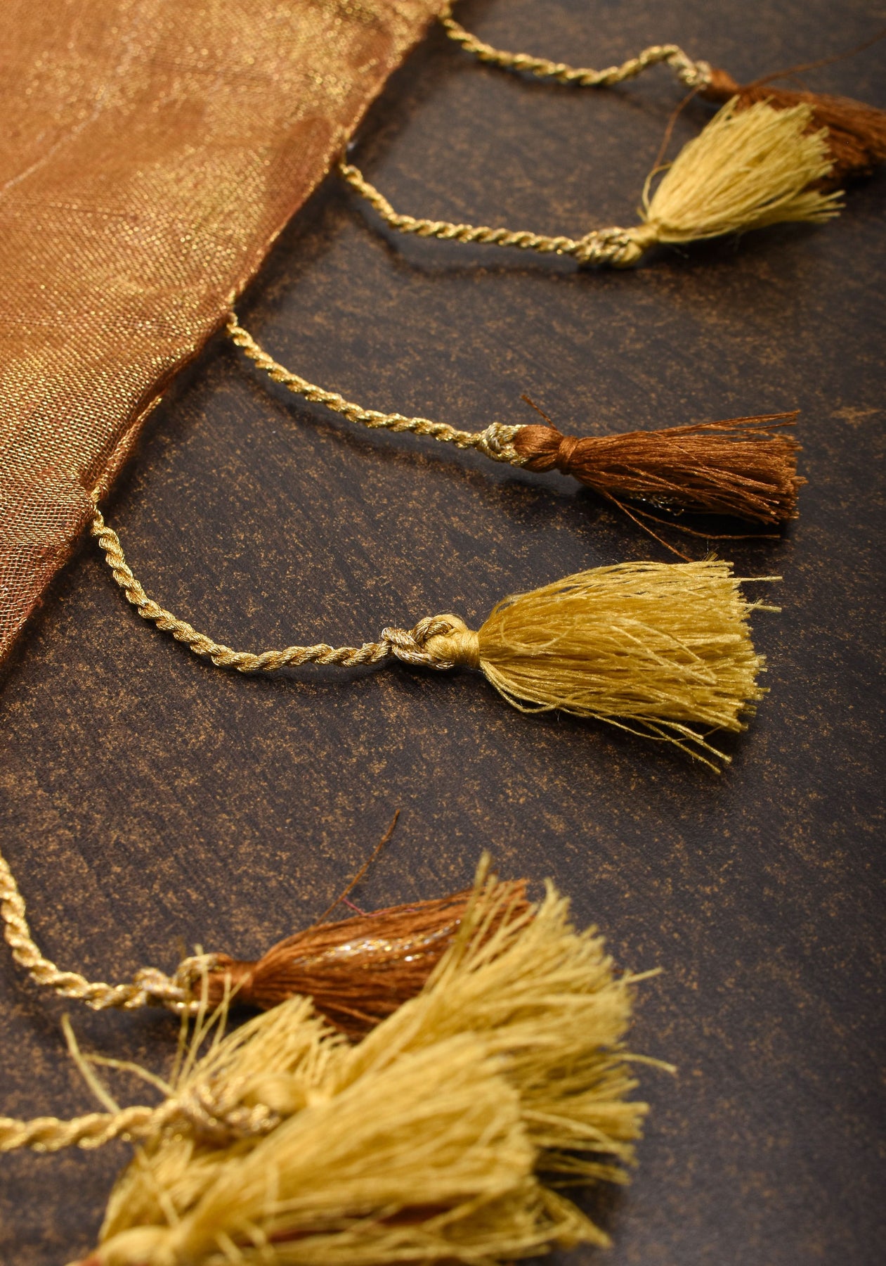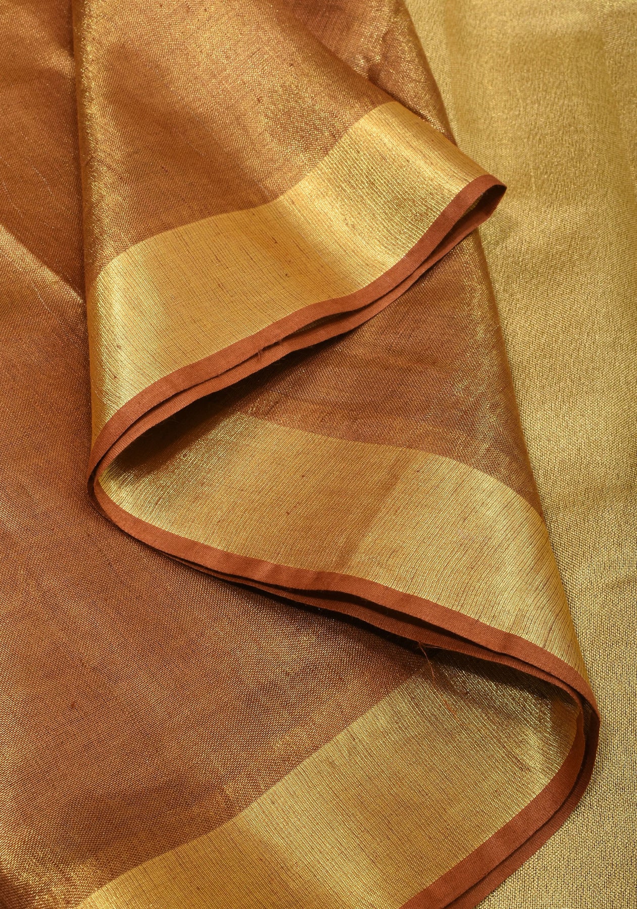 Caramel and Gold Tissue Linen Saree with Zari Border and long tassels