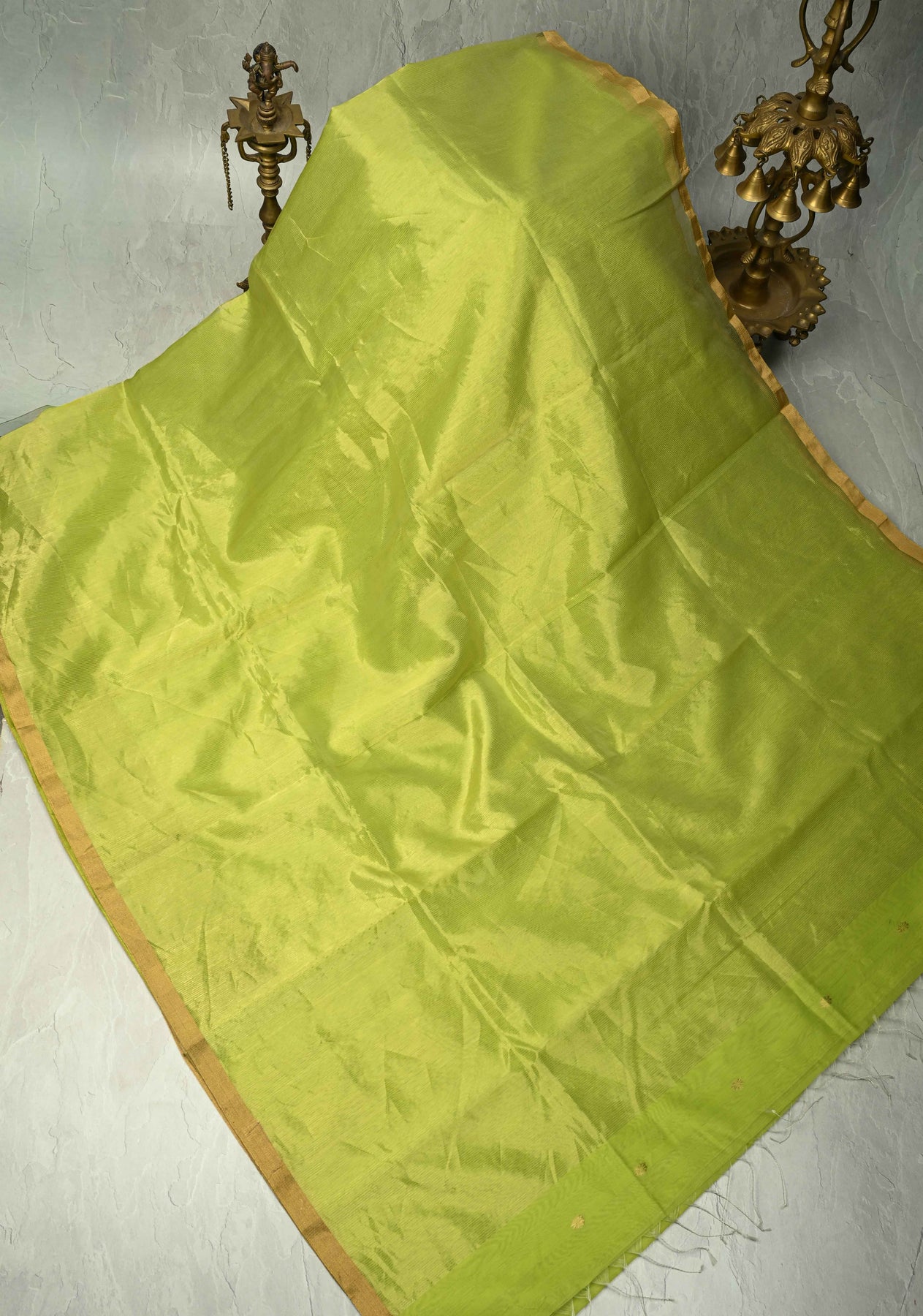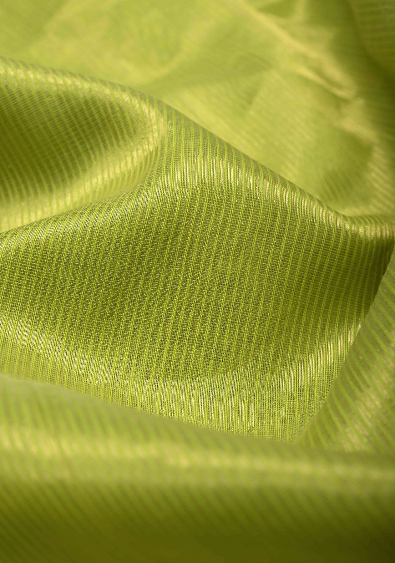The Chartreuse Half-and-Half Tissue Stripes Maheshwari Silk Cotton Saree is a beautiful fusion of traditional craftsmanship and modern design. The unique chartreuse shade brings a fresh, vibrant energy to the saree, while the half-and-half tissue stripes add a contemporary edge to its overall look. The luxurious Maheshwari silk-cotton fabric offers the perfect balance of sheen and comfort, making it suitable for both daytime and evening events. The saree is complemented with a minimal zari border, giving it just the right amount of sparkle without overpowering the design. Ideal for festive occasions, this saree exudes grace and timeless charm, ensuring you stand out with elegance.