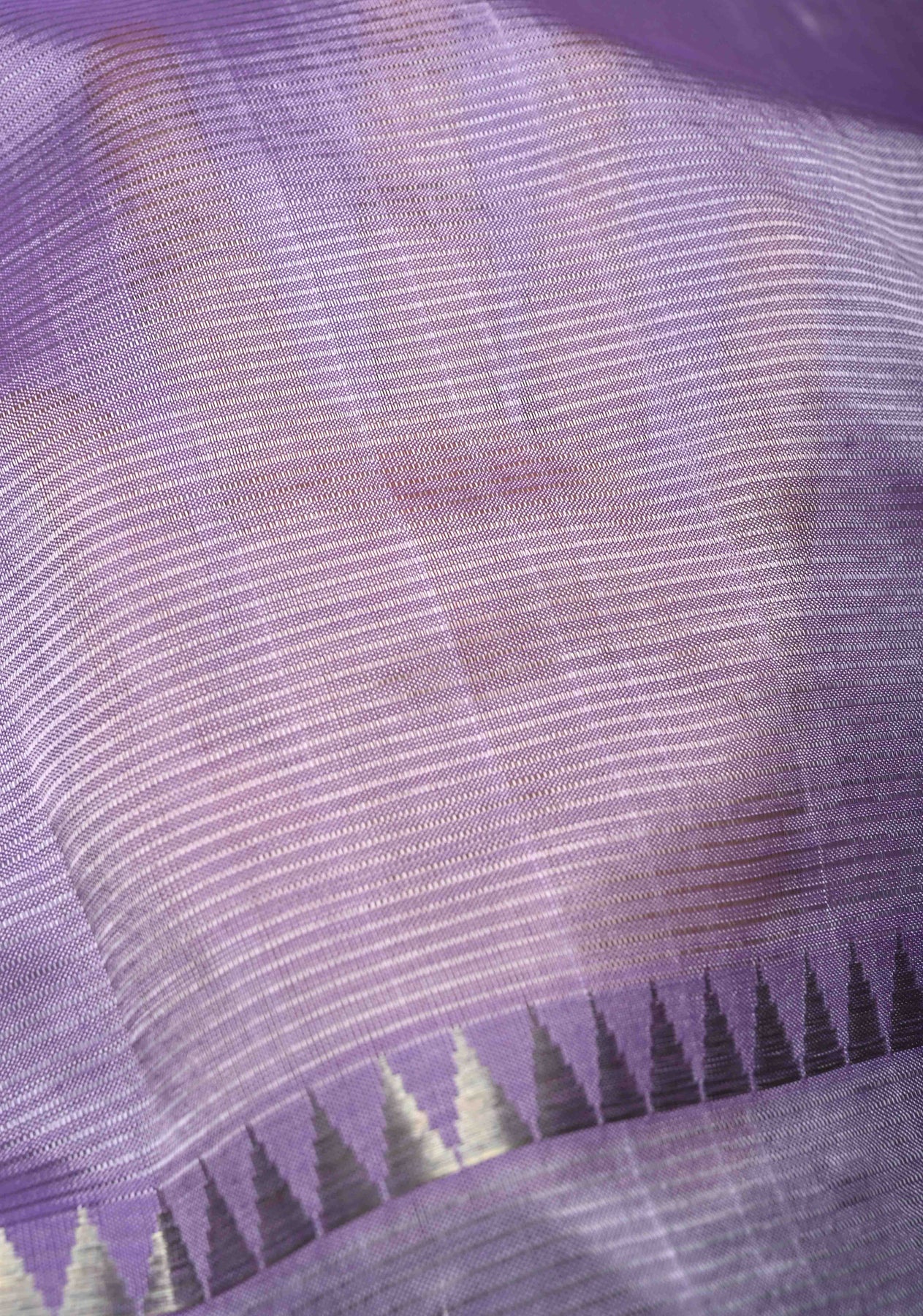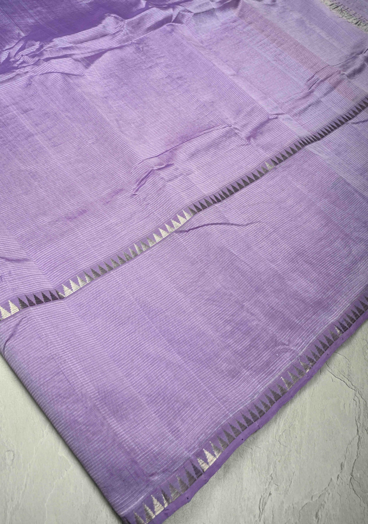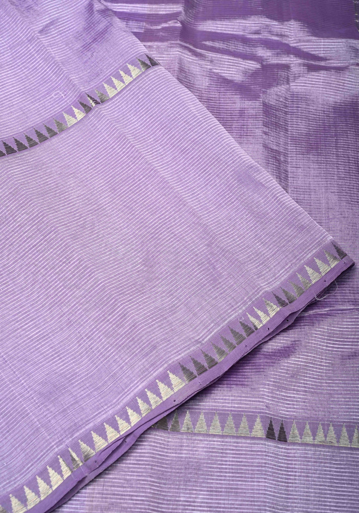 Lavender Handwoven Mangalagiri Silk Cotton Saree with Temple Wide Zari Border