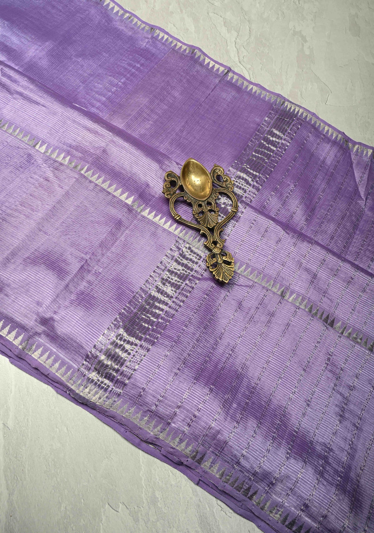Soft, elegant, and effortlessly graceful, this Lavender Handwoven Mangalagiri Silk Cotton Saree is a modern take on a classic weave. The soothing lilac tone offers a contemporary charm, while the bold temple-style wide zari border adds a traditional and auspicious touch. Crafted by skilled artisans on handlooms, the saree is made from a breathable silk-cotton blend, giving it a lightweight yet drape. Perfect for festive gatherings, temple occasions, or day functions where subtle sophistication stands out.