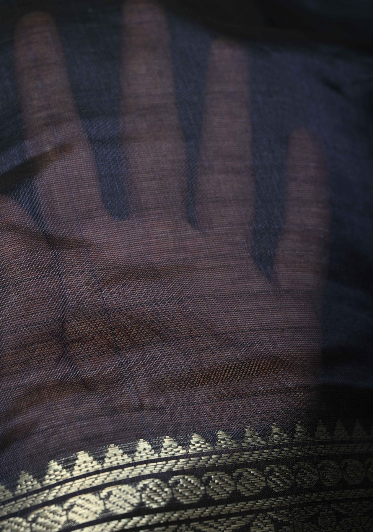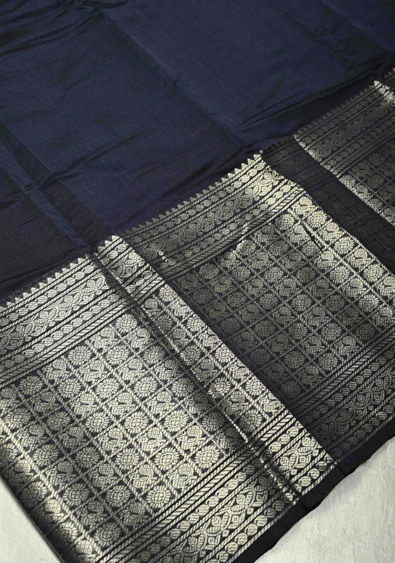 Midnight Blue Handwoven Mangalagiri Silk Cotton Saree with Wide Silver Zari Border