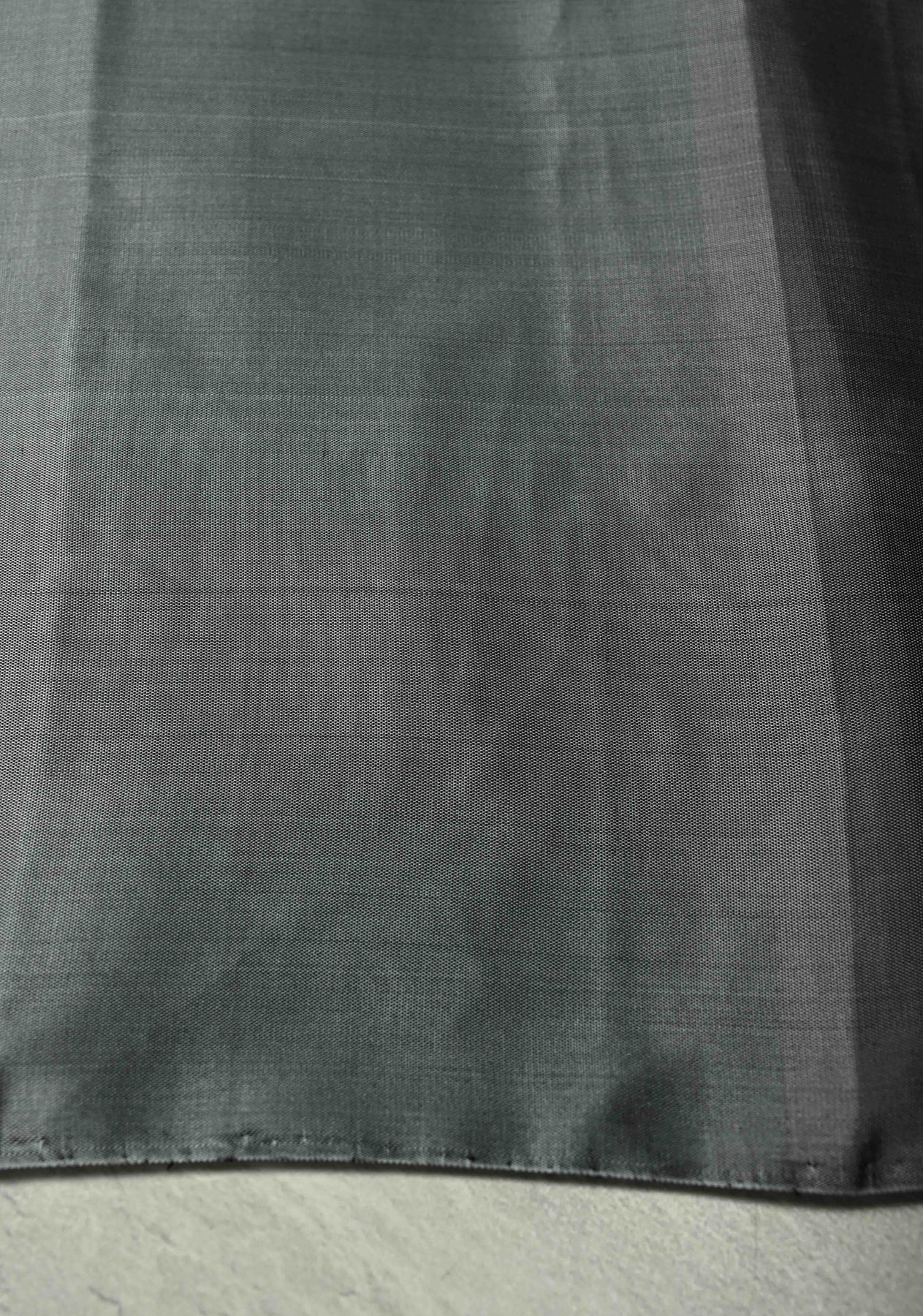 The body is adorned with finely woven zari stripes, adding a subtle sheen that enhances the of the silk. Scattered zari buttas bring classic charm and intricate detailing, giving the saree a timeless traditional touch. The look is completed with a striking contrast border, crafted with signature Kanjivaram craftsmanship to elevate its overall regality.