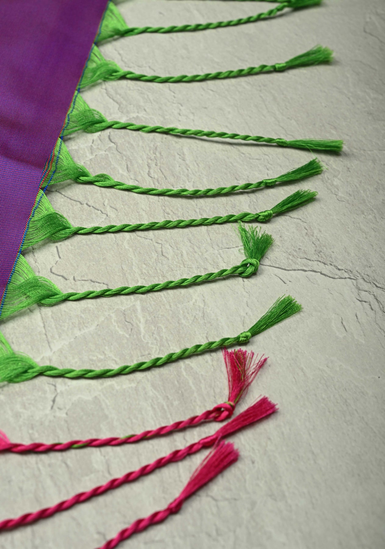 Framed by a beautifully woven contrast zari border, this saree exudes sophistication and classic beauty. Crafted from premium semi silk, it offers a lightweight, comfortable drape that flows effortlessly, making it an ideal choice for weddings, temple visits, and cultural celebrations