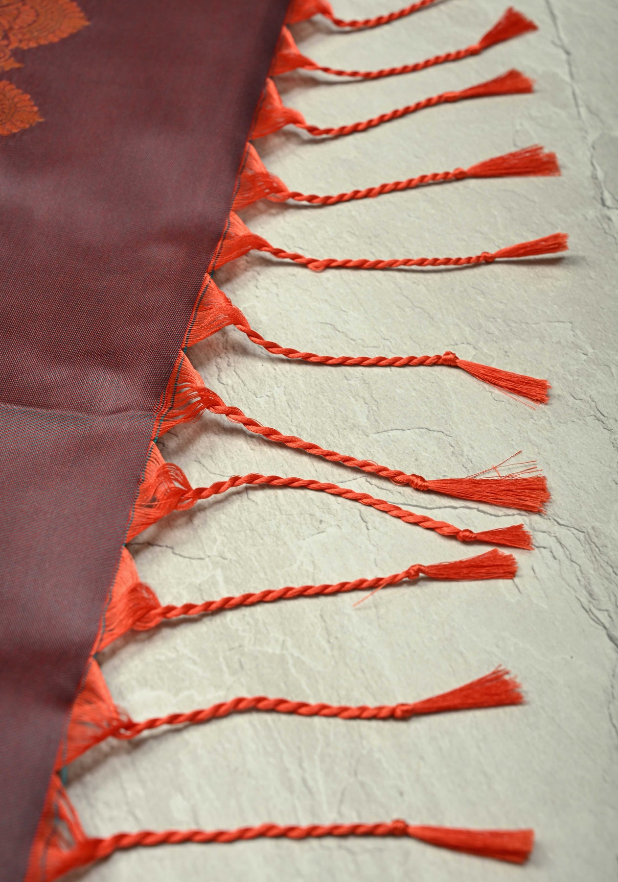 This saree is ready to wear with fall and pico done. Tassels adorn the pallu and add more grace to it. An unstitched blouse fabric is included.
