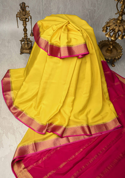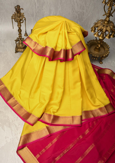 Bright Yellow Mysore Silk Saree with Contrast Zari Borders in KSIC Grade Thickness | SILK MARK CERTIFIED