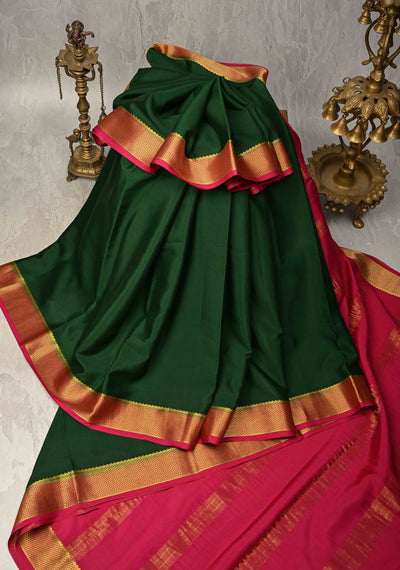 Dark Green Mysore Silk Saree with Contrast Zari Borders in KSIC Grade Thickness | SILK MARK CERTIFIED