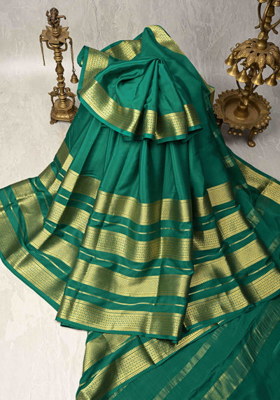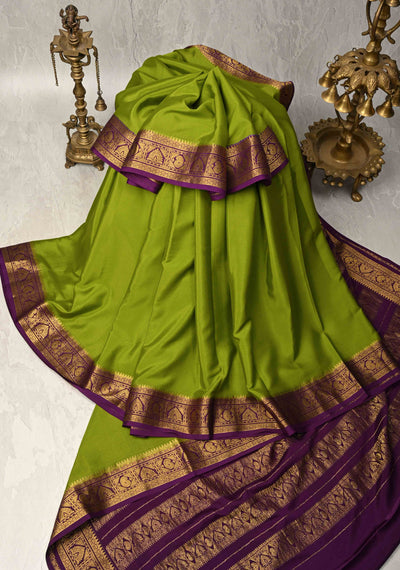 Sap Green Mysore Silk Saree with Contrast Zari Borders in KSIC Grade Thickness | SILK MARK CERTIFIED