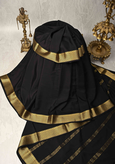 Black Mysore Silk Saree with Zari Borders in KSIC Grade Thickness | SILK MARK CERTIFIED