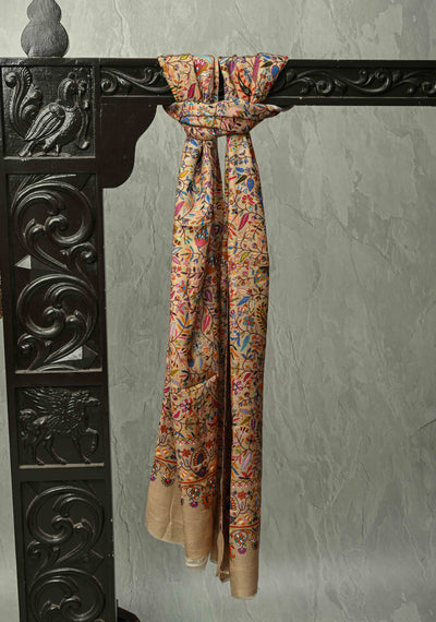 Kora Color Floral Meenakari Jaal Brocade on Cashmere Shawl Size 30 x 82
