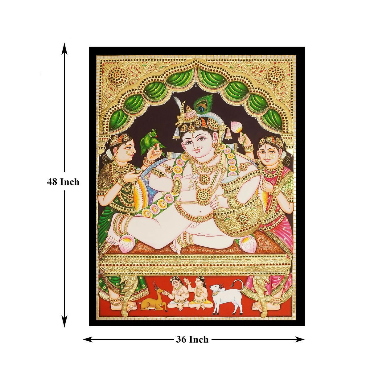 Handcrafted in the traditional Tanjore painting style, the artwork is adorned with 22ct pure gold foil, meticulously applied by skilled artisans using age-old techniques. The radiant gold embellishments enhance the sacred aura and grandeur of the painting, making it an ideal centerpiece for prayer rooms, living spaces, or spiritual collections.