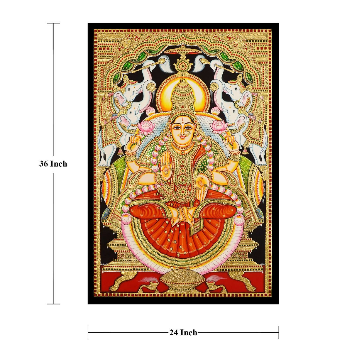 24*36 Authentic TANJORE PAINTING GAJA LAKSHMI With 22 Ct gold Foil and Jaipur Gemstones,Unframed