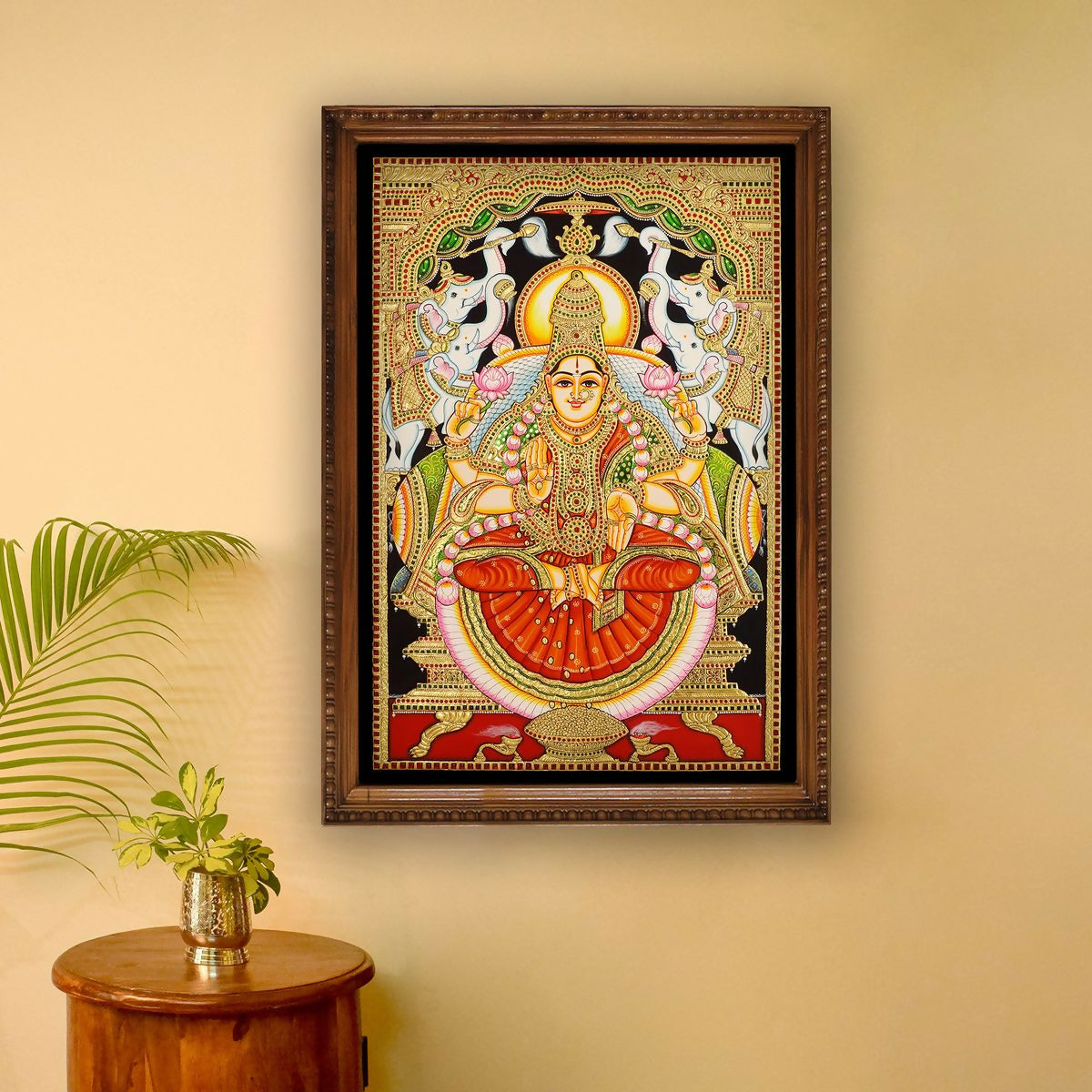 Ideal for devotees, collectors, or as a meaningful gift, this Gaja Lakshmi Tanjore painting radiates divine blessings, prosperity, and timeless spiritual elegance.