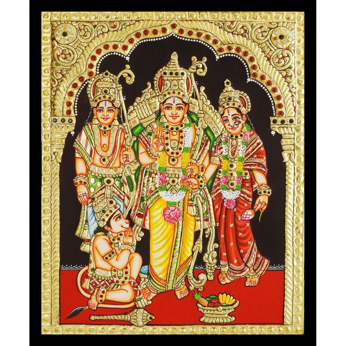 12x10" Tanjore Painting Kodandarama Authentic With 22 Ct gold Foil and Jaipur Gemstones ,Unframed