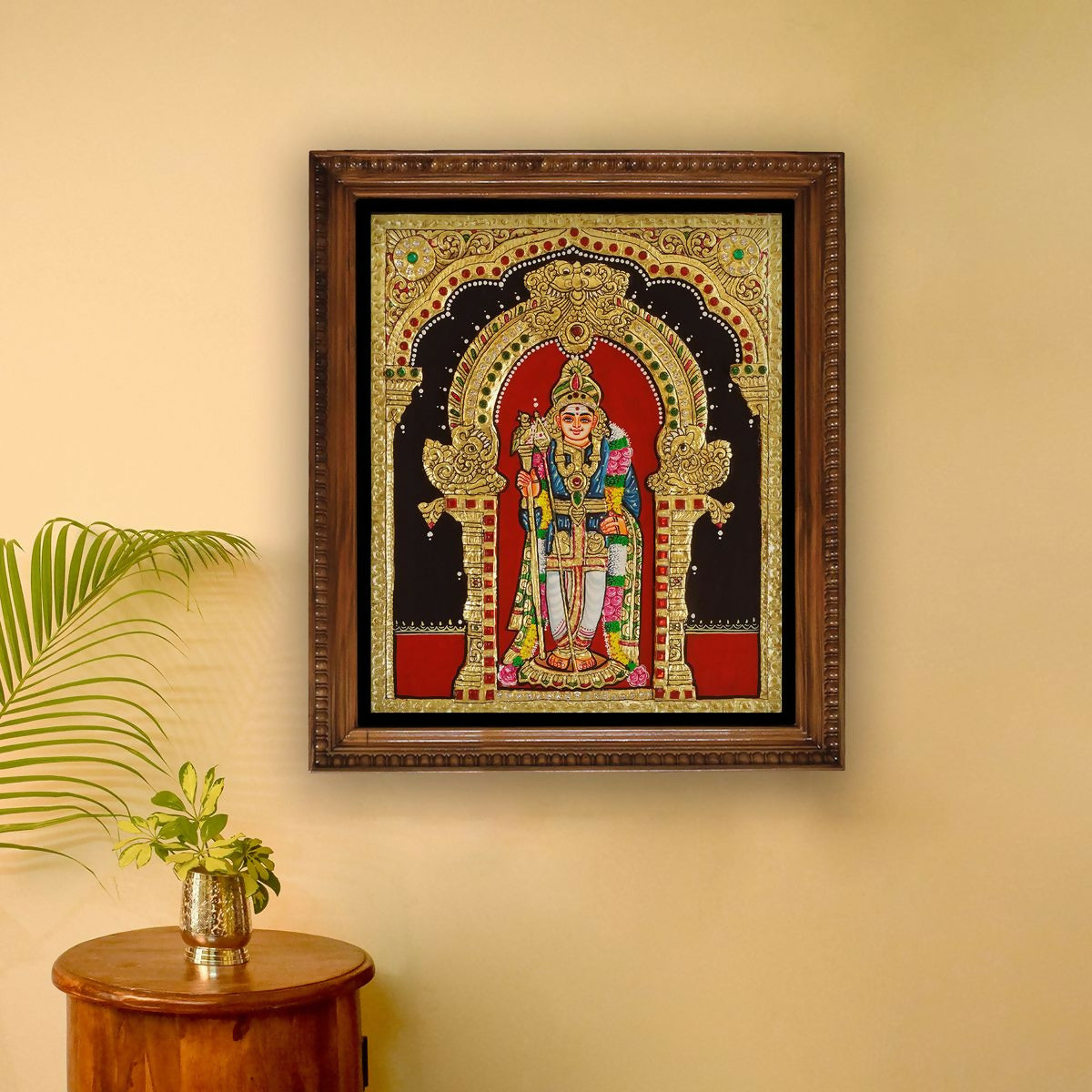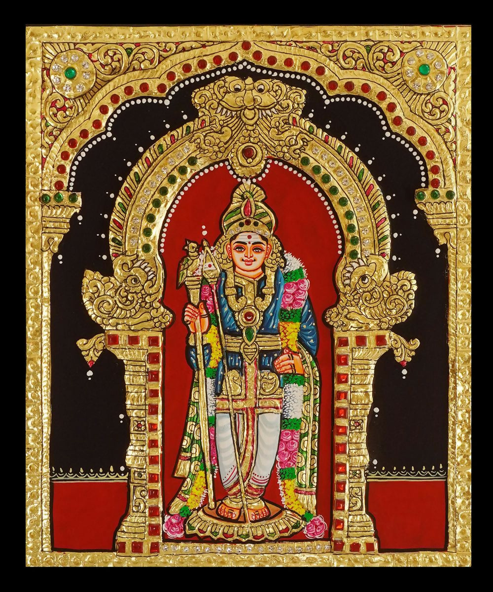 12x10" Muruga Tanjore painting, Authentic With 22 Ct gold Foil and Jaipur Gemstones ,Unframed
