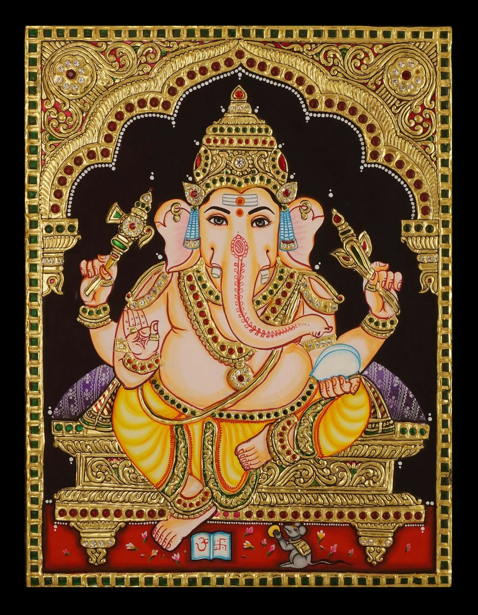 Regular price $394.24 Save $-394.24This exquisite Lord Ganesha painting embodies divine wisdom, prosperity, and auspicious beginnings. Revered as the remover of obstacles and the harbinger of success, Lord Ganesha symbolizes intellect, harmony, and good fortune. Depicted in his iconic form with an elephant head and serene expression, this artwork captures the essence of his benevolent and protective presence.