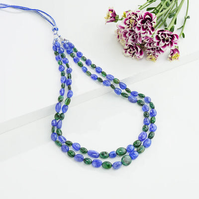 2 Strand Natural Emerald Tanzanite Beads Necklace