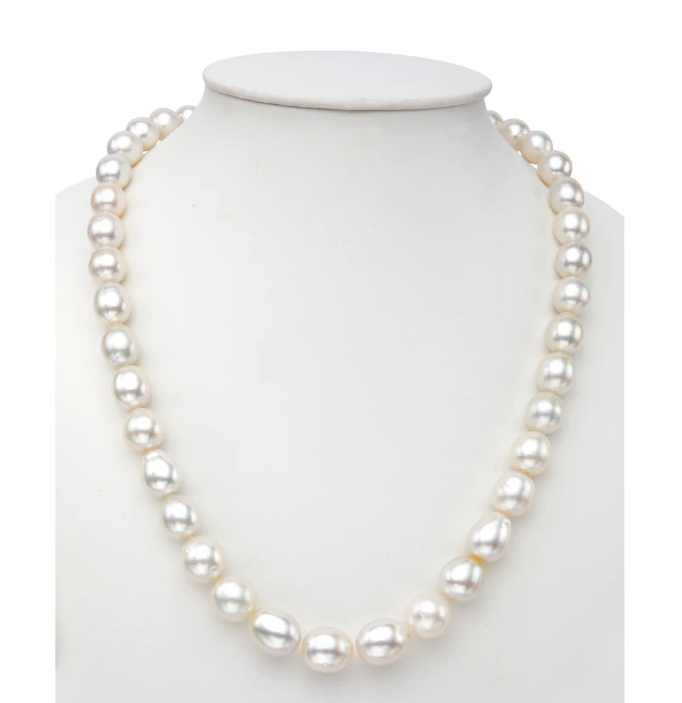 Discover refined elegance with our South Sea Pearl Necklace, featuring a single row of AA-grade, cream-colored pearls. These perfectly round 10-11MM pearls are delicately strung across an 18-inch length, offering a graceful and timeless look. Weighing approximately 359Ct, each necklace comes with a Certificate of Authenticity and is backed by a lifelong pearl guarantee, ensuring genuine quality and lasting beauty. Ideal for formal gatherings, bridal wear, or cultural celebrations, this piece adds a touch of sophistication to both ethnic attire and modern outfits.