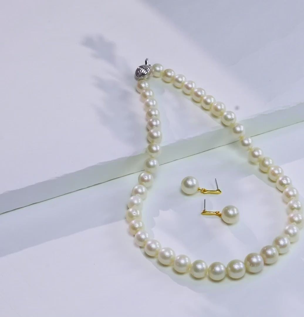 Note: The pearls used in this set are real. As with all natural materials, there may be slight inconsistencies such as in its shape and color. These are characteristic and attest to their authenticity and are not considered as defects,