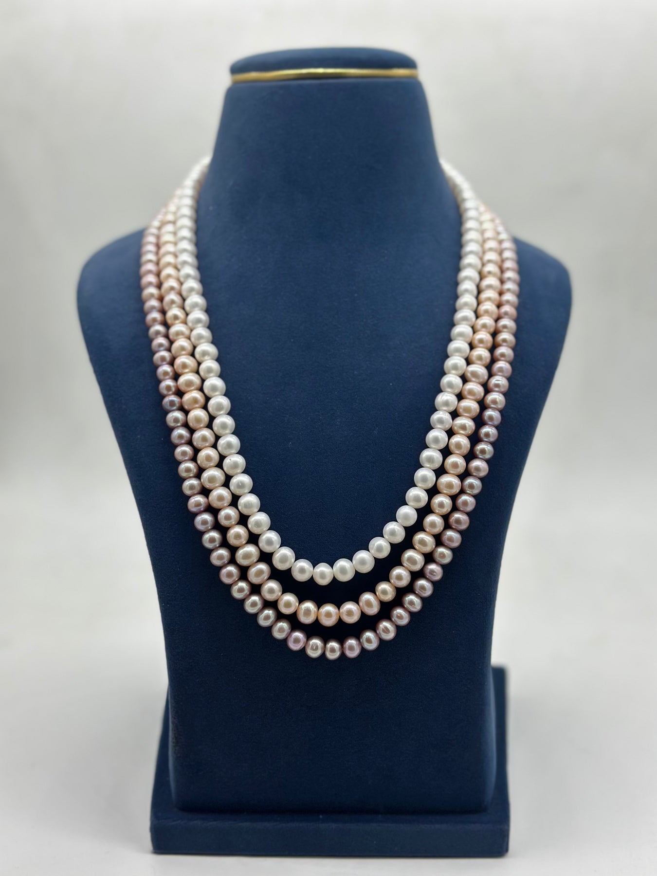 Add timeless sophistication to your jewelry collection with this 3 Layers Pure Pearls Necklace, beautifully crafted in an elegant white, champagne (shampiyono), and rose color combination. The lustrous pearls are arranged in graceful layers, creating a rich and luxurious look that enhances both traditional and contemporary outfits. Perfect for weddings, festive occasions, and special celebrations, this necklace is a classic statement of elegance and refined style.