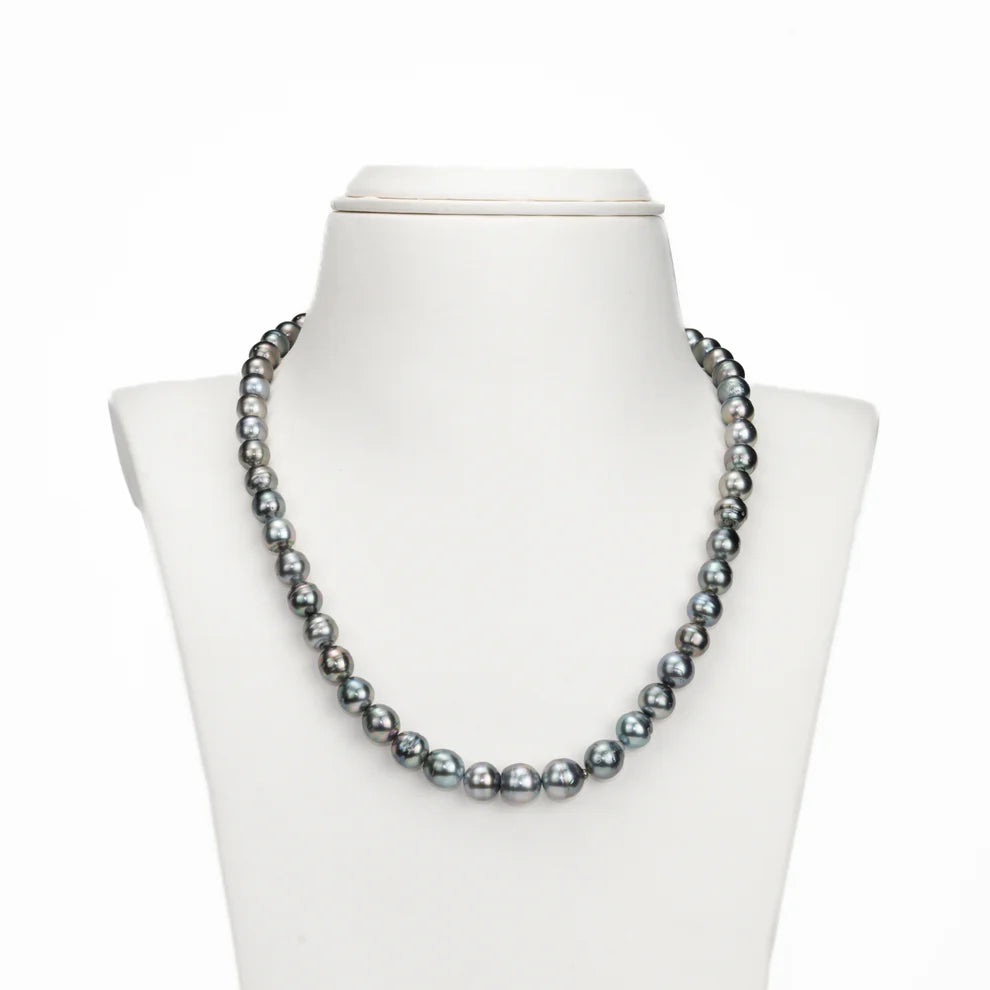 9.0-10.00mm Black Near Round Ringed Tahitian Pearls Necklace Set -AA Quality