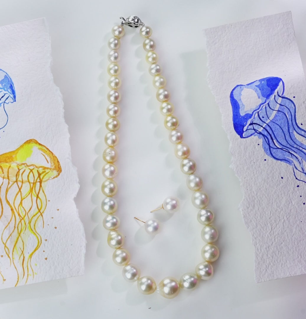 9.0-18.0mm Cream Near Round South Sea Pearls Necklace Set- A Quality