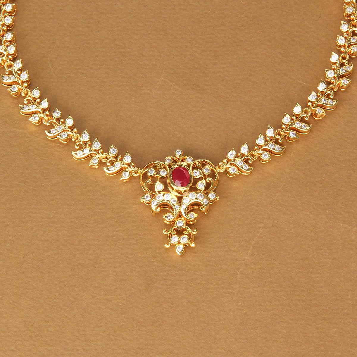92.5 Silver Gold Plated, Sahara Diamond Design Short Necklace