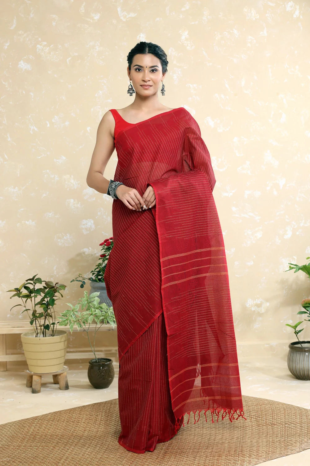 Elevate your wardrobe with our Red Cotton Linen Blouse. Designed for both comfort and elegance, this sleeveless blouse features a sleek back hook closure and a flattering U-neckline. Lined for a smooth fit, it effortlessly combines versatility with style, ideal for any occasion from casual outings to formal gatherings. Pair it with your favorite bottoms for a chic and polished look that stands out beautifully in any setting.
