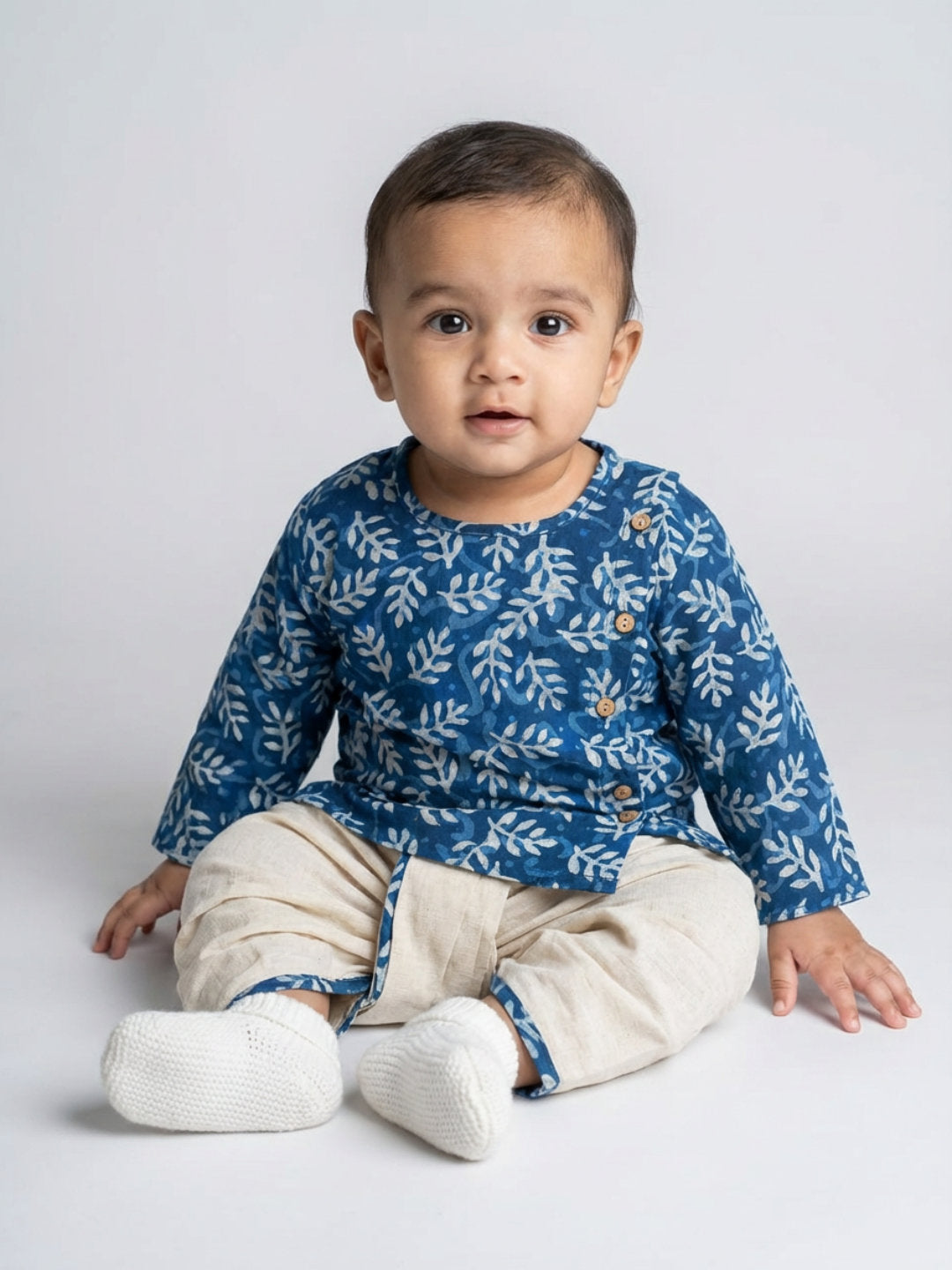 Add a traditional touch to your child's wardrobe with this kurta and dhoti pants set, designed for festive and cultural occasions. The round neck, full-sleeve angrakha-style kurta offers a classic silhouette, while the coordinated dhoti pants complete the ethnic look. Comfortable and easy to wear, this set is ideal for celebrations, family functions, and special events, combining traditional style with everyday comfort.