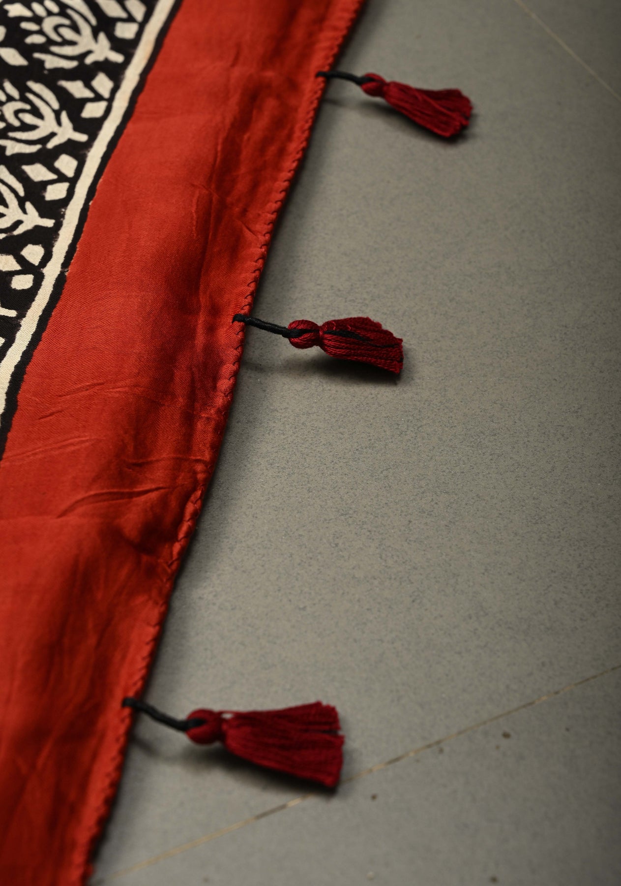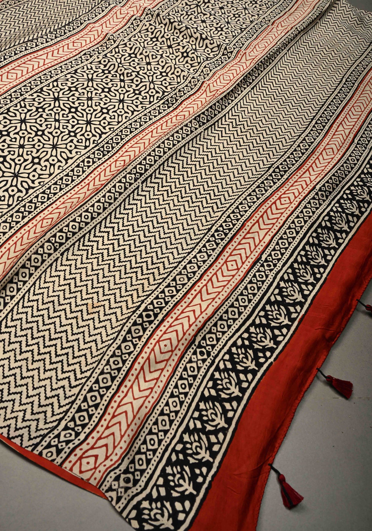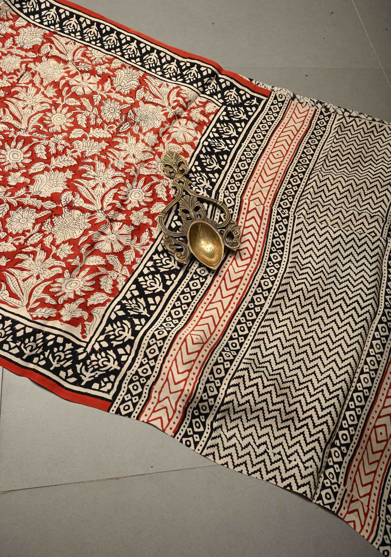 Brick Red Modal Silk Saree with Sanganeri Block Print
