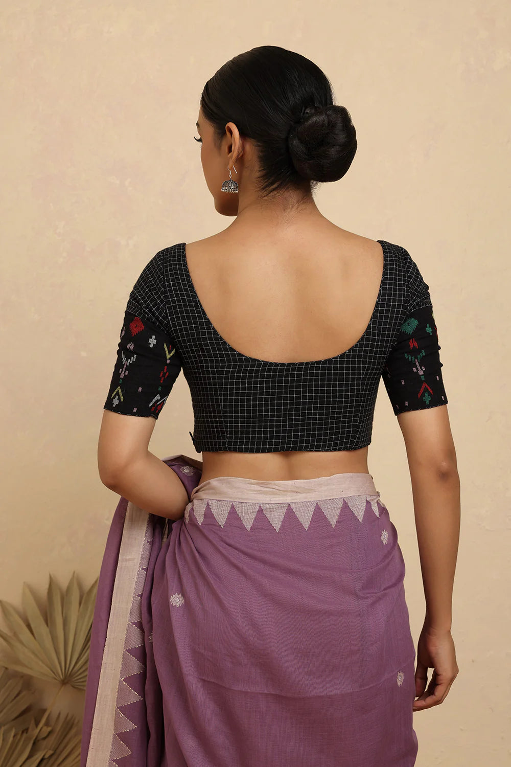 Our Checkmate Jamdani Blouse blends classic checks with contemporary elegance. Handwoven in fine Jamdani, it features half sleeves, comfortable padding, and a flattering fit. Perfect for pairing with sarees or lehengas, this versatile blouse transitions effortlessly from festive gatherings to casual outings, offering timeless style with a touch of modern sophistication.