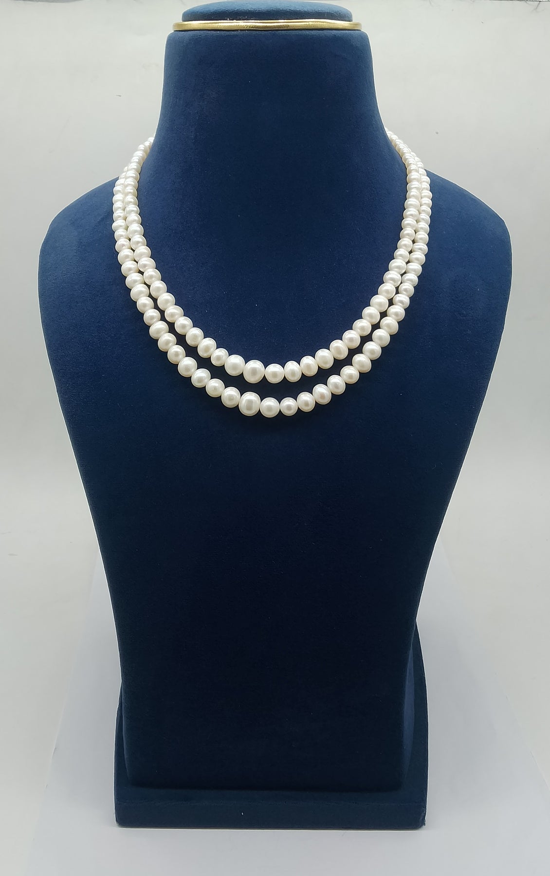 The Classic Two-Layer Necklace Featuring Bright White Graded Pearls is a timeless piece that radiates elegance and sophistication. Crafted with carefully graded pearls, each strand showcases a smooth, lustrous finish in a brilliant white hue, creating a harmonious and balanced design. The two-layer construction adds depth and dimension, making it perfect for both formal occasions and elevating everyday attire. Its simple yet refined style ensures versatility, while the high-quality pearls lend a luxurious touch that enhances any ensemble. This necklace is a must-have accessory for those who appreciate classic beauty with understated charm.