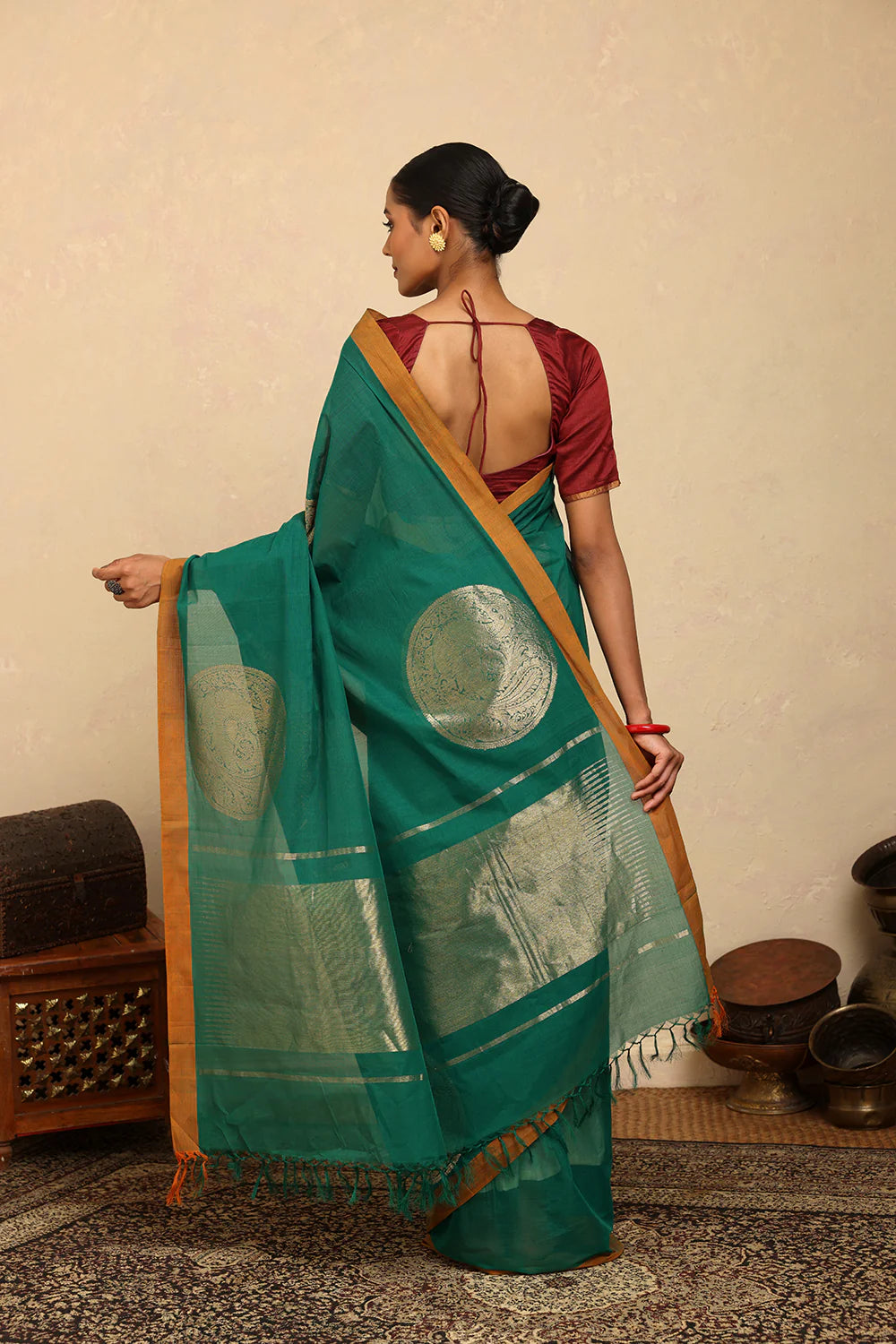 Statement Handloom Teal Cotton Sarees with Statement Mandala Motifs